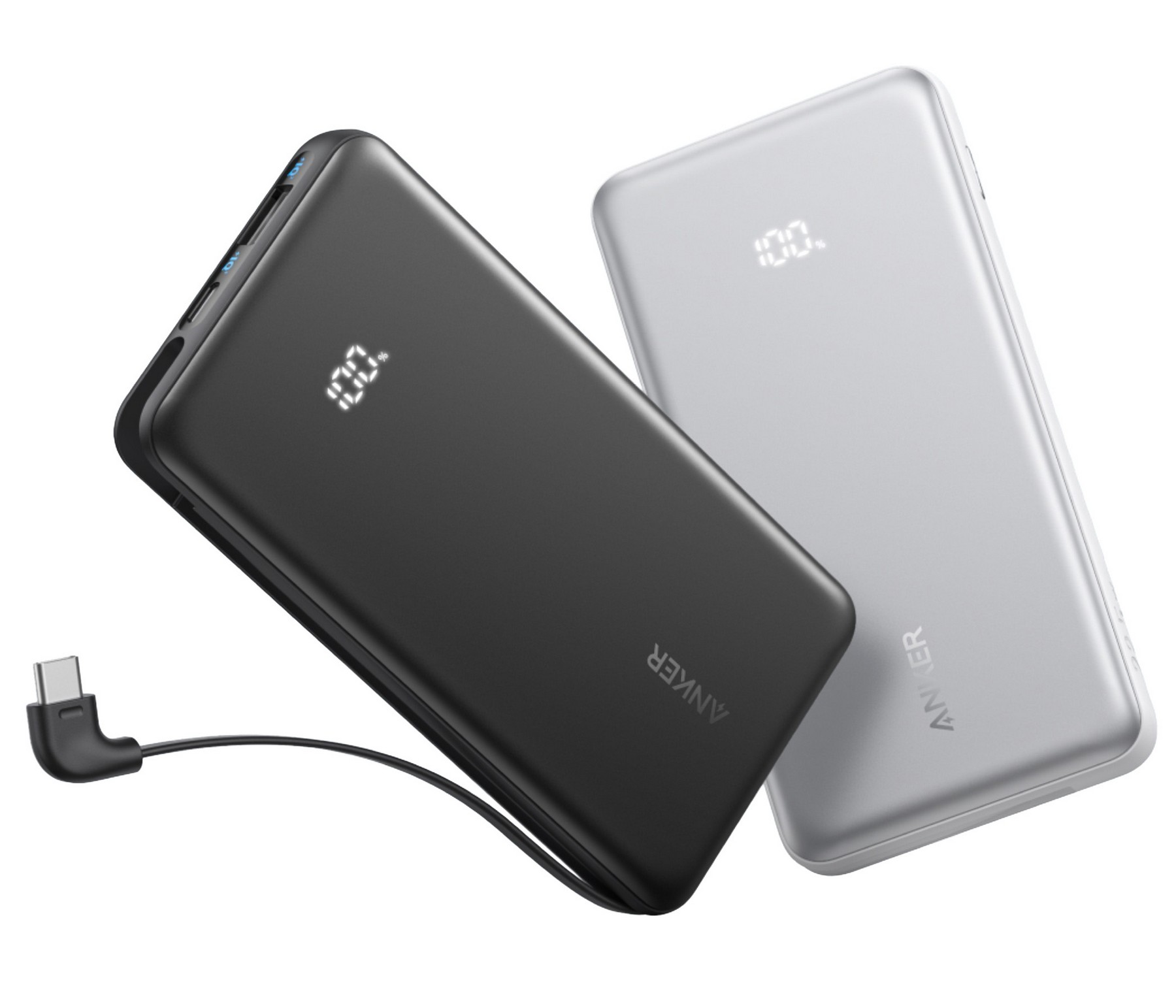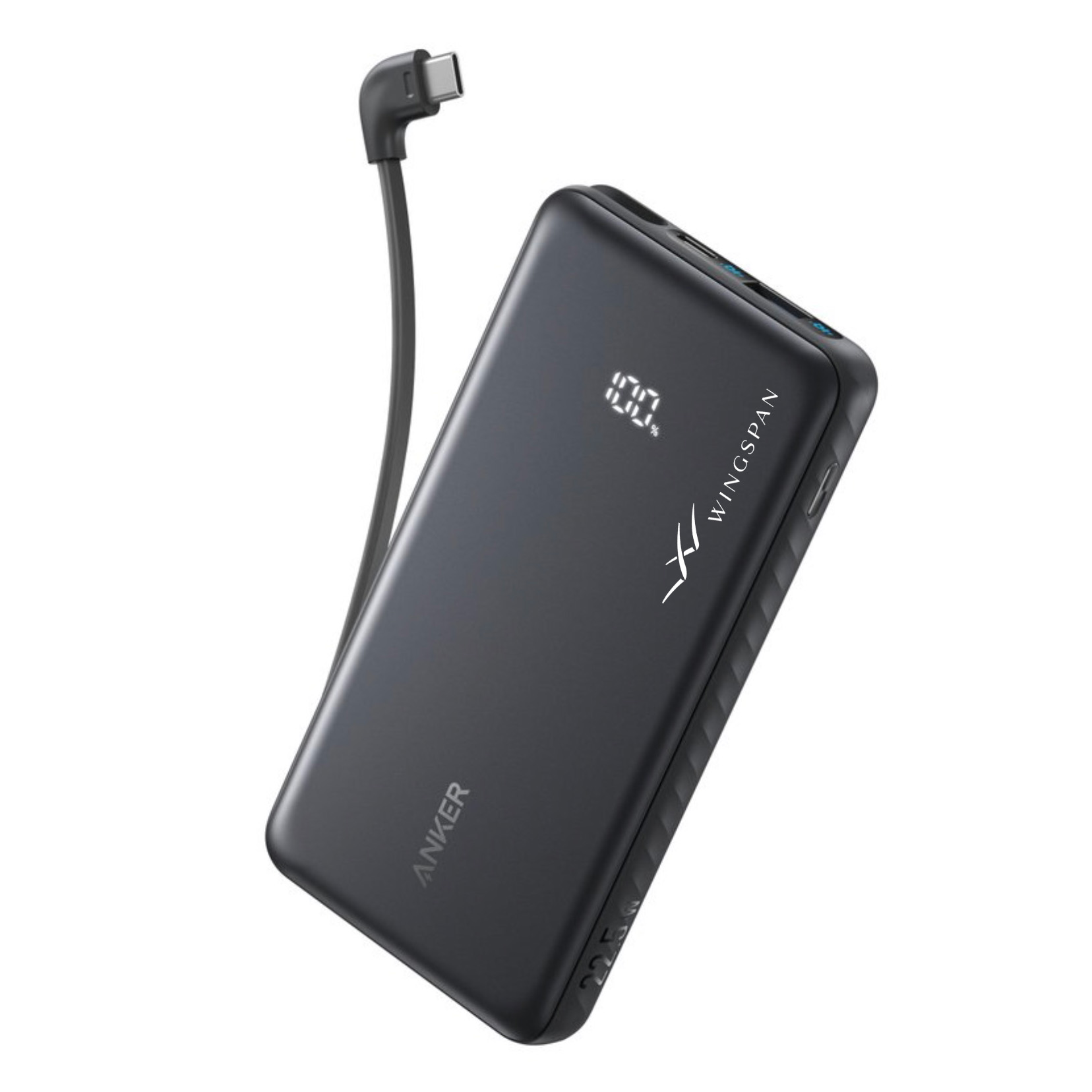 Anker Slim 10K Power Bank (22.5w, built-in USB-C)- 10,000 mAh- USB-C input/output(22.5w) – Built-In USB-C Cable- Pass-Through Charging- Hidden Battery Indicator Screen- Supports 15W Samsung Fast Charging- Universal compatibility. Complies with UL. 5.51″ L x 2.83″ W x .61″ Thick
